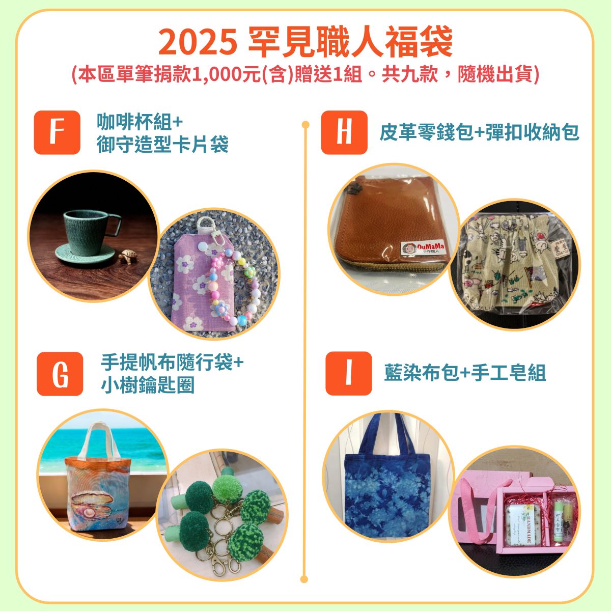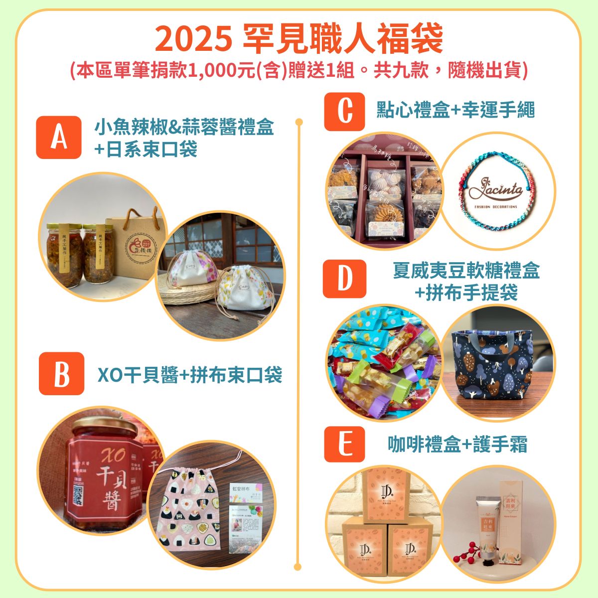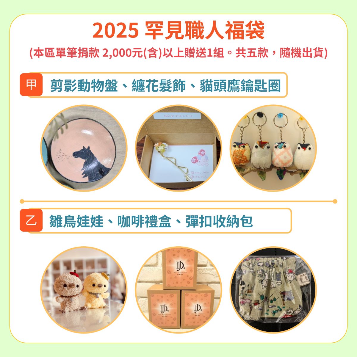 至12/05(五)止 捐款 1,000元 (含) 認捐1組【罕見職人 手作愛心福袋】